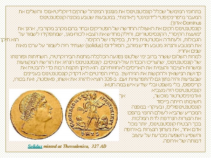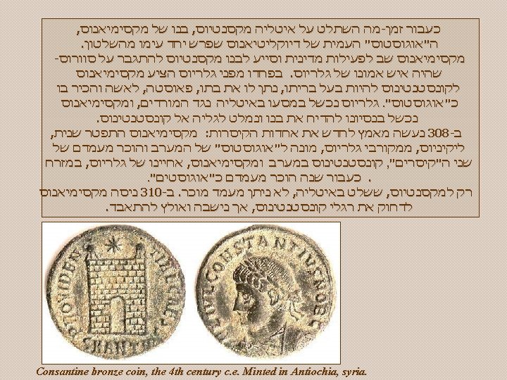 , שלום לך אני מזמין אותך לבקר באתר המצגות שלי ולהנות ממצגות נוספות אסף פלר , להתראות http: //assaf. feller. googlepages. com/ Coin struck under Constantine I to commemorate the founding of Constantinople