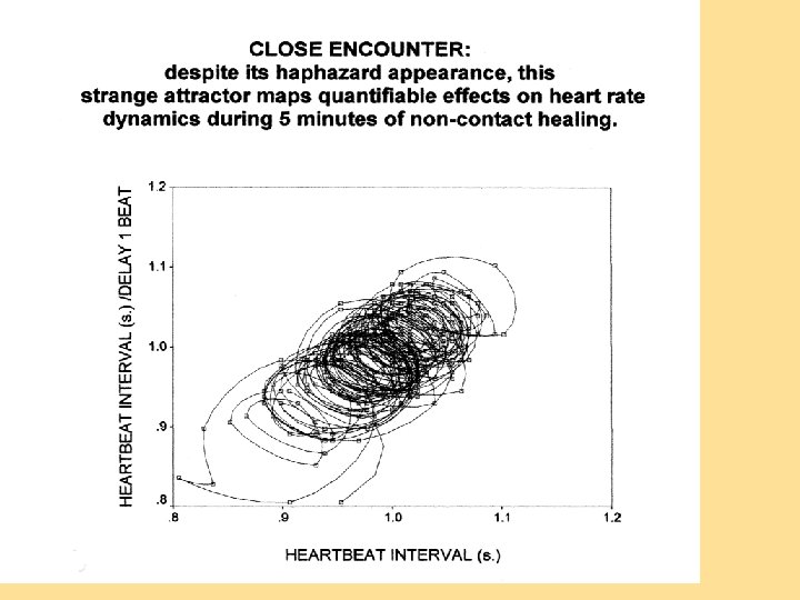External qi: the chaos connection • Many complex biological systems have the capacity for self-organisation • Newer approaches to physiology have found that this self-organising behaviour can be measured quantitatively • Some of these systems (eg heartbeat regulation) may respond to subtle impacts