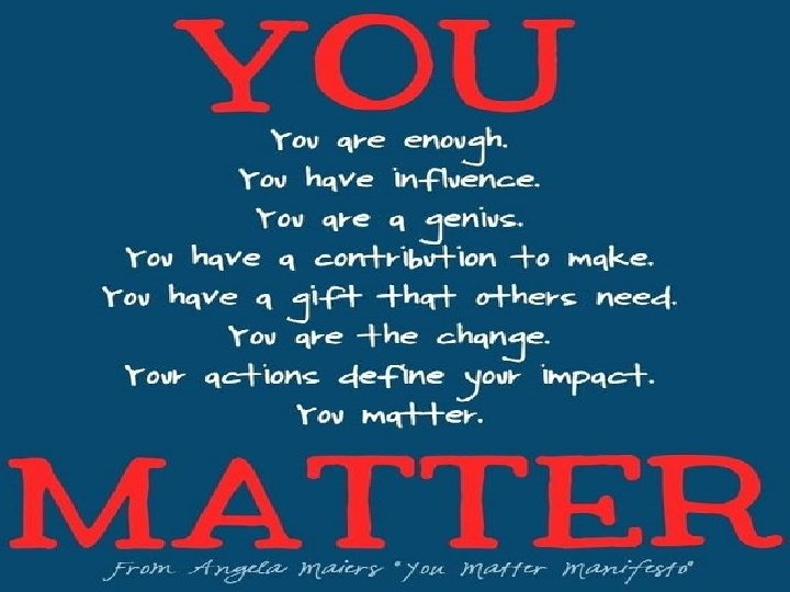 If you are what you eat, then you DEFINITELY are what you think! • Feed minds with positive feedback, not just negative feedback (Sandwich Technique) • 6 POSITIVEs for each NEGATIVE (Daniel Siegel 2011 lecture, Los Angeles Children’s Grief Conference) • Take a break from watching the news (especially before bed)