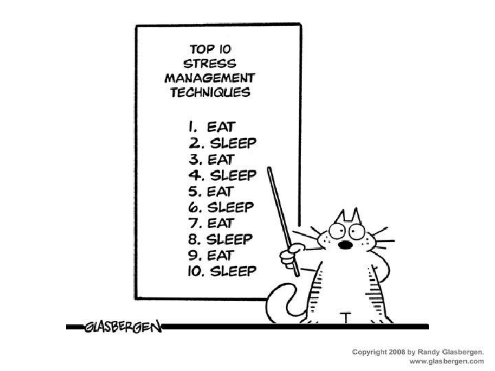 Stress affects mind/body health: Quick Surveys: • 59% reported feeling nervous or sad. • 51% reported symptoms of fatigue. • 56% reported inability to sleep/sleeping too much. • 55% reported lack of interest, motivation or energy. Study: Americans Engage in Unhealthy Behaviors to Manage Stress (APA, 2006)