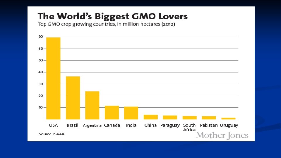 Famine and GE Foods n Zimbabwe, Malawi, and Angola have also refused GM food aid n Companies donated $4 million worth of hybrid fruits and vegetables to Haiti after 2010 earthquake to open Haitian market n Each year more than 2 million tons of GMO food, often unlabeled, is sent by the U. S. to developing countries