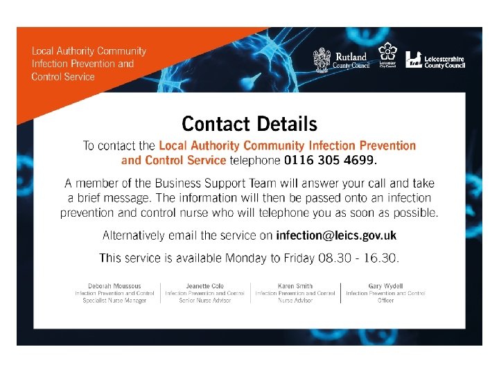 Health and Social Care Act 2008 (Revised July 2015) Code of Practice on the prevention and Control of infections and related guidance Deborah Moussous - Infection Prevention and Control Specialist Nurse Manager Jeanette Cole - Infection Prevention and Control Senior Nurse Advisor Karen Smith - Infection Prevention and Control Nurse Advisor Gary Wydell - Infection Prevention and Control Officer