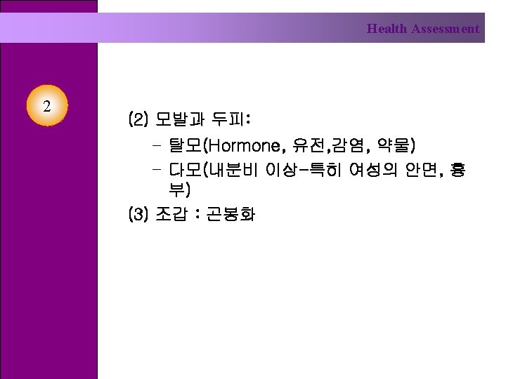 Health Assessment 2 건선(psoriasis) 원형탈모증 allergic drug reaction