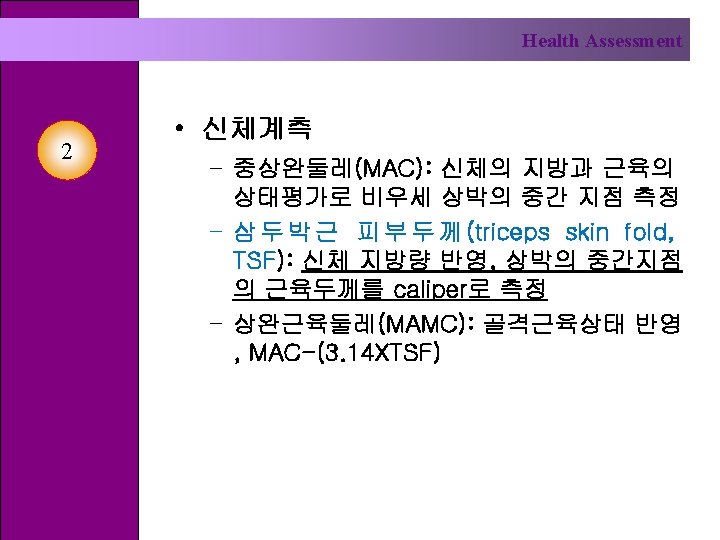 Health Assessment • 피하지방 두께 측정(skin caliper) 2