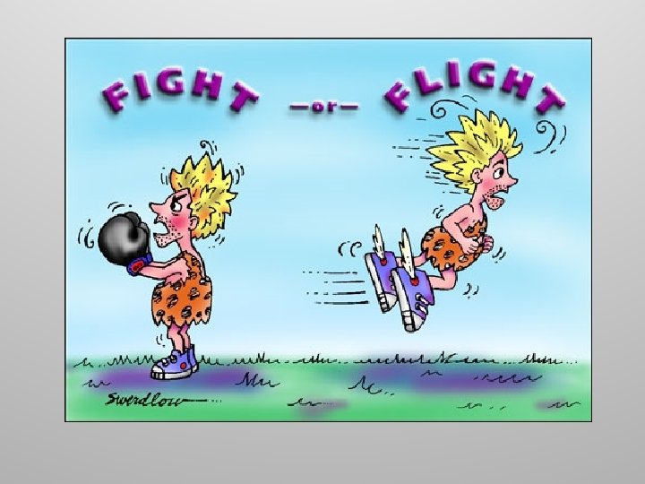 Fight or Flight • Body releases Epinephrine – A hormone, also known as Adrenaline • Allows body to respond quickly in emergency circumstances • Physical effects – Breathing speeds up, heart beats faster, muscles tense up, pupils get wider, digestion slows down, and blood sugar increases