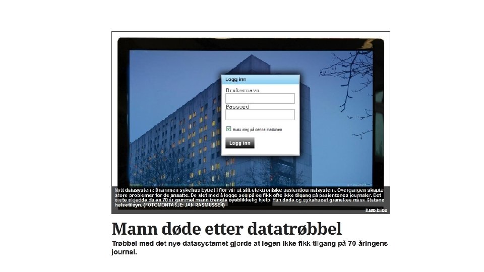 Health (information) domain fragmentation § Various subsystems deal with different types of data § Patient data: name, address etc § HR data: name, diplomas, employment history § Logistics: drug batch No. , expiry date § Has “naturally” led to different systems § The links between domains have been neglected § Lack of “boundary spanners”