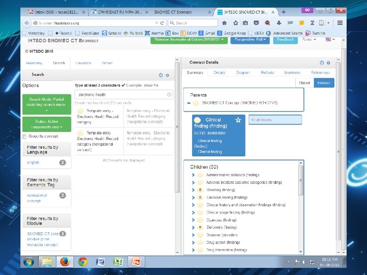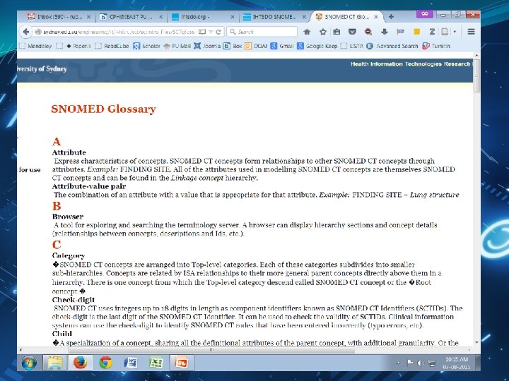 SNOMED CT v. SNOMED CT provides for consistent information interchange and is fundamental to an interoperable electronic health record. v. It allows a consistent way to index, store, retrieve, and aggregate clinical data across specialties and sites of care. v. It also helps in organizing the content of electronic health records systems by reducing the variability in the way data is captured, encoded and used for clinical care of patients and research.