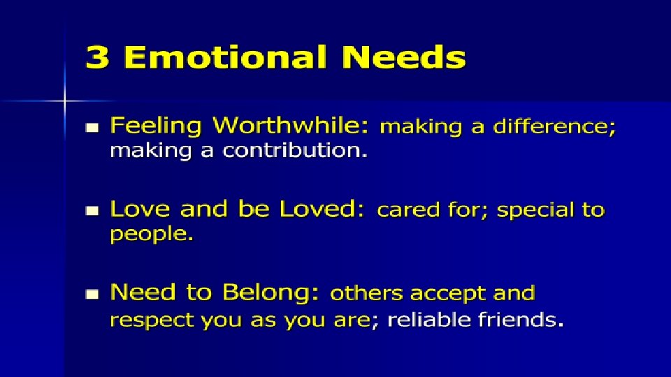 Spectrum of Emotions n Most emotions come in a spectrum or continuum. – Example: Pleasure/Happiness/Joy n n n Pleasure = intense, but short lasting Happiness = contentment, satisfaction Joy = deep satisfaction, permanent, isn’t based on external circumstances Joy Deepest Happiness Pleasure Superficial