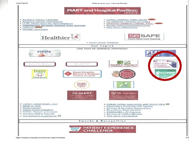 Healthcare Epidemiology Department NEEDLESTICK WEBSITE http: //uhmc-iweb 1. uhmc. sunysb. edu/ptsafety/ printable. Ver. asp? id=1800 OR, GO TO THE HOSPITAL INTRANET AND LOOK UNDER “HOT TOPICS” Wash Hands Prevent Transmission