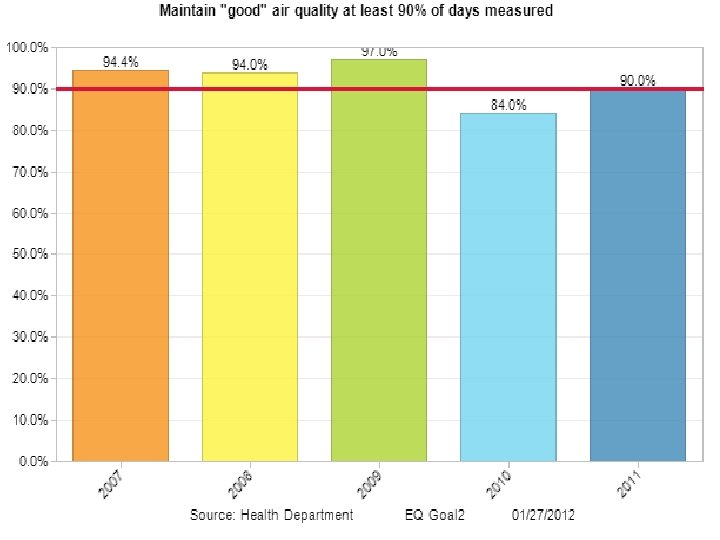 Healthy People in Healthy Environments What do we do? • 8, 760 hours of monitoring • 111 permits issued • 111 emission inventories • 319 inspections • 2 major enforcement actions • 1 Environmental Award given