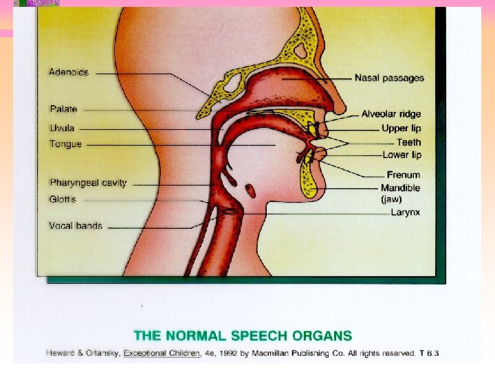 Service delivery models • Inclusion. There is little reason to exclude the speech impaired student all day long from the classroom • Consultative service • Itinerant service--pathologist comes to classroom • Pull-out speech--child goes to “the magic speech room” once a week • Intensive-cycle scheduling