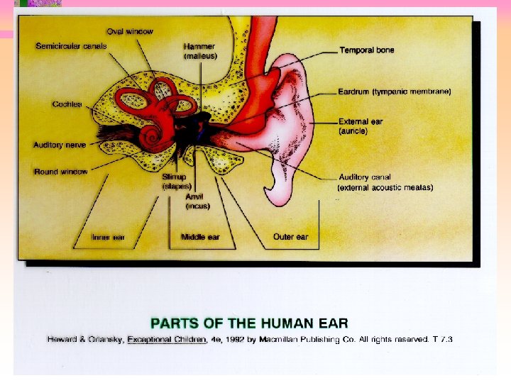 Indicators of hearing loss • Physical problems associated with the ears • Articulates poorly and omits consonant sounds (speech banana) • Turns up volume on radio, TV, stereo • Requests repetitions; “huh? ” • Unresponsive to normal voice • Reluctant to participate in oral activities