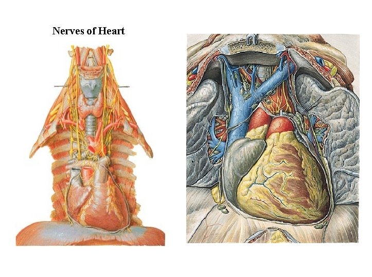 Nerves – autonomic system o Sympathetic – nn. cardiaci cervicales sup. + medii + inf. , thoracici n n positive dromotropic, bathmotropic, inotropic, chronotropic effect β 1 receptors o Parasympathetic – n. X → rr. cardiaci cervicales sup. +inf. , thoracici n negative effect o Viscerosensory fibres (T 1 -T 4) n Head´s zone behind sternum and in ulnar edge of left upper limb