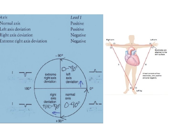 Lets make a Mean Electrical Axis Calculation: Lead I: Right Arm (-) Left Arm (+) Net deflection (mm) =_____ Lead II: Right Arm (-) Left Leg (+) Net Deflection (mm) =_____ Lead III: Left Leg (+) Left Arm (-) Net Deflection (mm) =_____ Estimated MEA= _____degrees What does it mean? ? ______