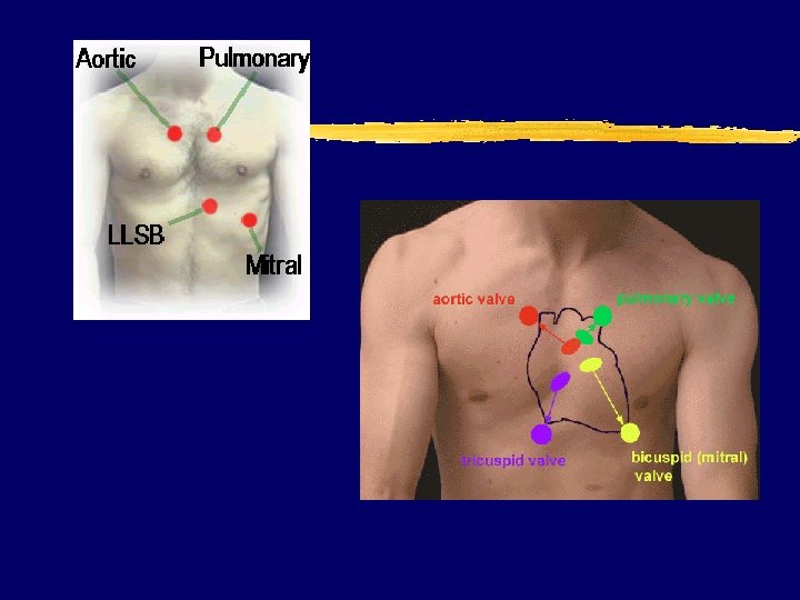 Mechanisms of Heart Murmurs z They are usually caused by one of the following mechanisms: y. Flow across partial obstruction (e. g. aortic stenosis) y. Flow across valvular or intravascular irregularity w/o obstruction (e. g. bicuspid aortic valve w/o true stenosis) y. Increased flow through normal structures (e. g. aortic systolic murmur associated w/anemia)