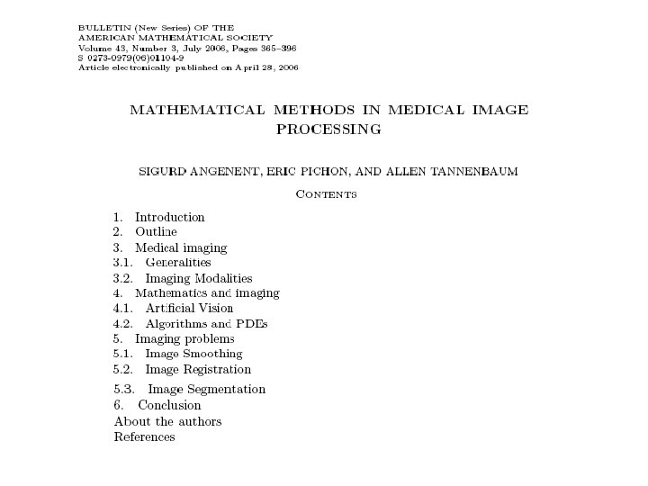 Acknowledgement: Some of the graphs and pictures are copied from the manuscript of Frederic Guichard and Jean-Michel Morel, and from the website of Junping Shi.