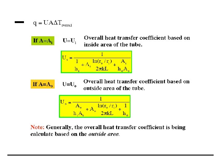 Overall Heat Transfer Coefficient • For tubular heat exchangers we must take into account the conduction resistance in the wall and convection resistances of the fluids at the inner and outer tube surfaces. (11. 3 a) Note that: where inner tube surface outer tube surface Heat Exchangers 17