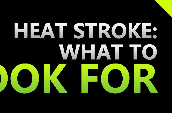 WHAT TO LOOK FOR Common symptoms of heat stroke Body temperature of 105° or higher Strong and rapid pulse Physical collapse, Inability to walk Extreme disorientation, dizziness, vomiting Low blood pressure Unconsciousness and possible seizures