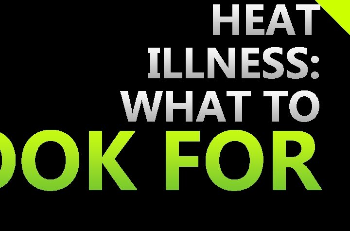 WHAT TO LOOK FOR Different types of Heat Illness • • Heat Cramps Heat Syncope Heat Exhaustion Heat Stroke These illnesses are NOT a progression! You can go straight to heat stroke with no other symptoms!