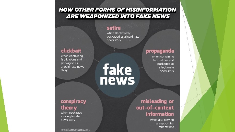 FAKE NEWS IS NOT TRUE (The term is being used by some to describe biased news. ) Understand traditional media in print/digital form and TV shows, i. e. The New York Times and Washington Post and “leaning-partisan” news sites like MSNBC and Fox News
