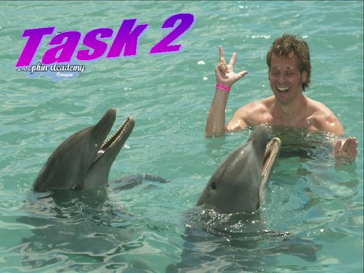 Task 2: Rearrange the following sentences to make a complete description of a dolphin, beginning with “ Dolphins are not fish. They are mammals that live in the water. . ”. a. Dolphins are carnivores and they eat mainly fish. (Feeding habits) b. Although they can be found in all oceans, they prefer coastal waters and bays. (Range and habitat) c. A female dolphin gives birth to one calf every two years after a gestation period of eleven to twelve months. (Offspring) d. Dolphin populations are at risk due to the pollution of their habitat and accidental entrapment in fishing nets. (Conversation concerns) e. A dolphin can normally live from twenty-five to sixty-five years and some species of dolphins can even live longer. (Life span) f. Dolphins are among the most intelligent animals on Earth. (Special features) g. The size of dolphins vary greatly. The smallest dolphin is just about 50 kg in weight and 1. 2 meters in length while the largest one can weigh up to 8, 200 kg and is 10 meters long. (Size) 1. f 2. b 3. g 4. a 5. c 6. e 7. d