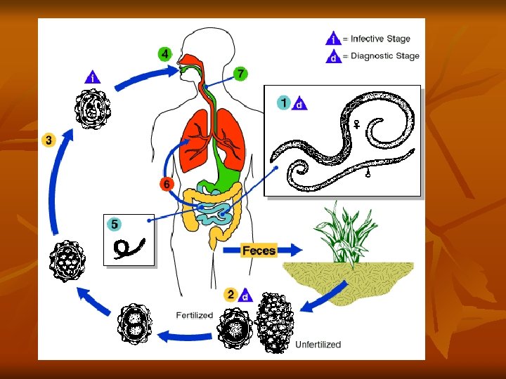 In a group referred to soil transmitted helminths the life cycle involve only one host man, but the infective transfer stage larvae remaining in the egg that require period of development in the soil and the soil function as intermediate host Example: Ascaris lumbricoides Trichuris trichura