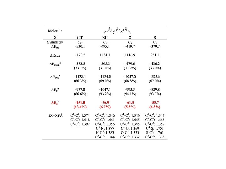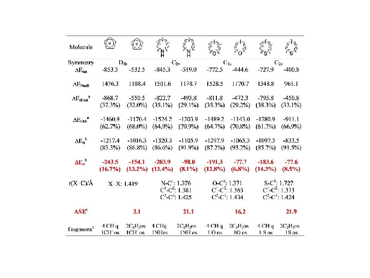 Conjugation and Hyperconjugation CONCLUSIONS Ø The calculated DEp values taken from the EDA can be used to estimate the strength of the relative contributions of p interactions that come from conjugation/hyperconjugation Ø The EDA method has a predictive value. The trend of the calculated DEp values is in very good agreement with NMR chemical shifts and experimentally derived Hammett constants. Ø The comparison of DEp values of cyclic system with a suitable reference compound makes it possible to estimate the stabilization due to aromaticity. Ø Bond energies and lengths should not be used as indicators of the strength of hyperconjugation because the effect of s interactions and electrostatic forces may compensate for the hyperconjugative effect.
