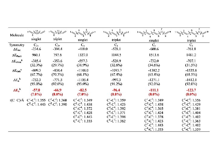 I. Fernández, G. Frenking, Chem. Commun. 2006, 5030. r = 0. 99, SD= 0. 36 Calculated quinoid character: dr = (((c + c’)/2 – (b + b’)/2) + ((a + a’)/2 – (b + b’)/2))/2.