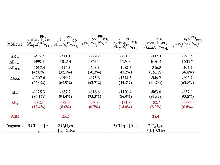 Energy Decomposition Analysis (EDA) Extended Transition State Method (ETS) K. Morokuma, J. Chem. Phys. 1971, 55, 1236 T. Ziegler, A. Rauk, Theor. Chim Acta 1977, 46, 1 A-B A + B Three Steps: 1. r(A) + r(B) [r(A) + r(B)](r. A-B) DEelstat 2. N (A, B) 0=N (A, B) DEPauli 3. (A-B)s (A-B) 0(A, B) DEOrb 1. + 2. + 3. = DEint + DEprep = DE(BDE) (A-B)p