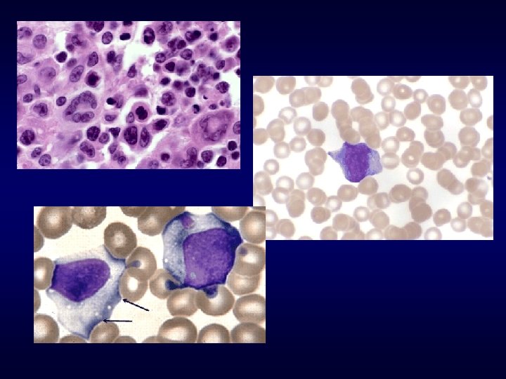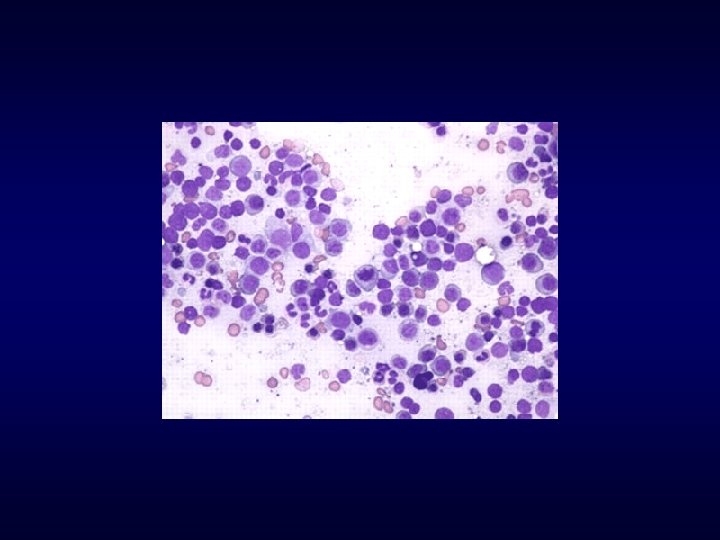 Caso 2 Doente de 73 anos, sexo masculino, viuvo, reformado Referenciado por astenia acentuada e progressiva nos últimos 6 meses Anemia e adenopatias cervicais e axilares Hemograma: Hb – 7 g/dl VGM – 112 fl Leucócitos - 3200 / l Plaquetas – 80 000 / l