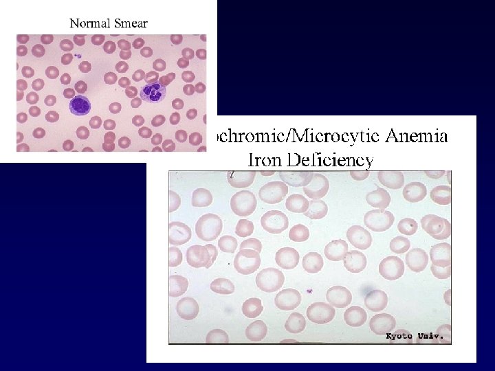 ANEMIA • WHO criteria: Hb < 125 g/L in adults • US criteria: – M: Hb < 135 g/L – F: Hb < 125 g/L