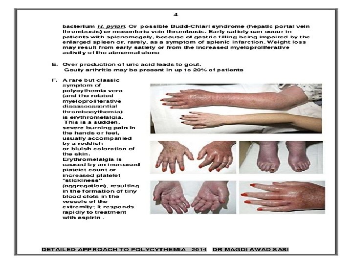 Polisitemi Vera Klinik Bulgular �Deri • Yüzde plethore • Yaygın kaşıntı • Eritromelalji q. Kardiovasküler • Hipertansiyon • Arteriyal ve venöz tromboz