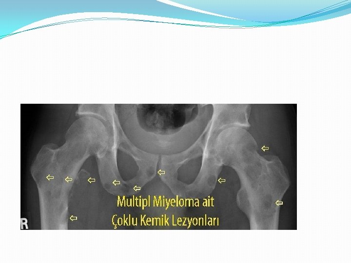 Multiple Myelom q Belirtiler ü Kemik sorunları ü Anemi ü Lökopeni ü Trombositopeni ü Hiperkalsemi ü Sinir sistemi hasarı ü Böbrek sorunları enfeksiyonlar
