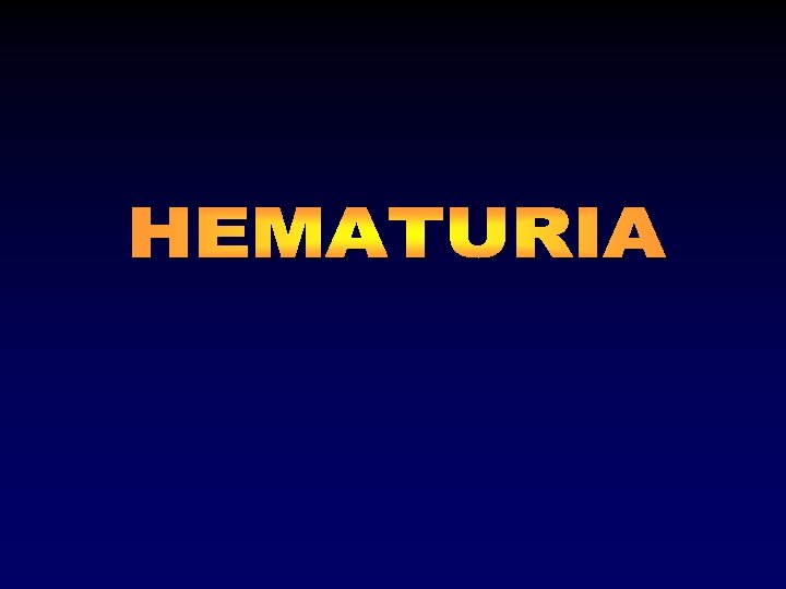 HEMATURIA • Definición: – Más de cinco (5) eritrocitos por campo de Alto poder (540) en muestra fresca de orina (sedimento urinario) 10 -15 ml de orina centrifugada a 1. 500 rpm durante 5 -7 minutos en más de 2 ocasiones.