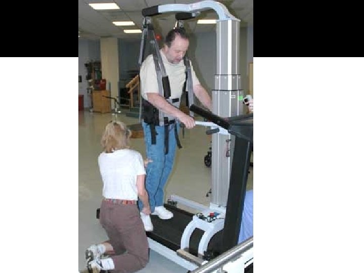 Strategies to improve locomotion �Body weight support treadmill training. �Central pattern generators �Stimulate automatic walking using intensive task oriented training. �Progression : from BWSTT reduce the support to no support to increasing speed over the treadmill to final over ground walking.