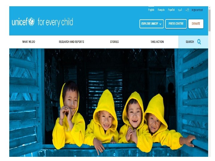 Birleşmiş Milletler Çocuklara Yardım Fonu - UNICEF • 1954’te kurulmuştur. • Çocuk haklarının uygulanmasını destekleme konusunda uzmanlaşmış Birleşmiş Milletler kurumudur. • Kurumun bütün çalışmaları, tarihte en yaygın olarak benimsenen insan hakları sözleşmesi olan BM Çocuk Haklarına dair Sözleşme doğrultusunda yürütülmektedir.