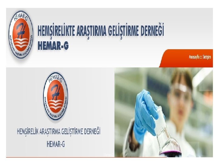 Hemşirelikte Araştırma Geliştirme Derneği (HEMAR-G) • Hemşirelikte Araştırma Geliştirme Derneği (HEMAR-G), 29. 02. 1996 tarihinde kuruluş başvurusu yapılan ve Nisan 1996’da tüzüğü onaylanarak faaliyete geçen bilimsel nitelikte bir dernektir. • Derneğin amacı, hemşireliği, inceleme ve araştırmalara dayalı olarak geliştirmek ve mesleki hakların korunması ve geliştirilmesi için çalışmaktır.