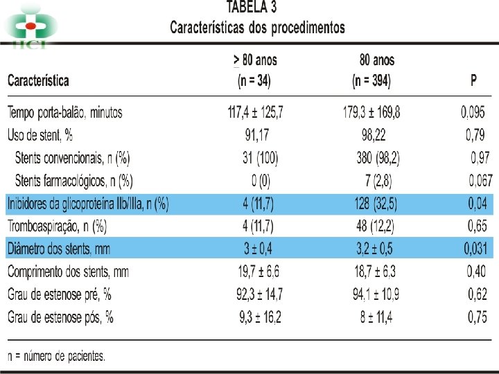 DISCUSSÃO ü STENTS ELEVADOS NOS DOIS GRUPOS ü Nº STENTS FARMACOLÓGICOS FOI BAIXO = RAZÕES SÓCIO ECONÔMICAS ü INIBIDOR IIB – IIIA: § > 80 ANOS = MENOS USADO TALVEZ RECEIO DE SANGRAMENTO/ CRITÉRIO OPERADOR § < 80 ANOS = USO DE 32, 5% DENTRO DAS TAXAS RELATADAS PELO REGISTRO DA SOLACI