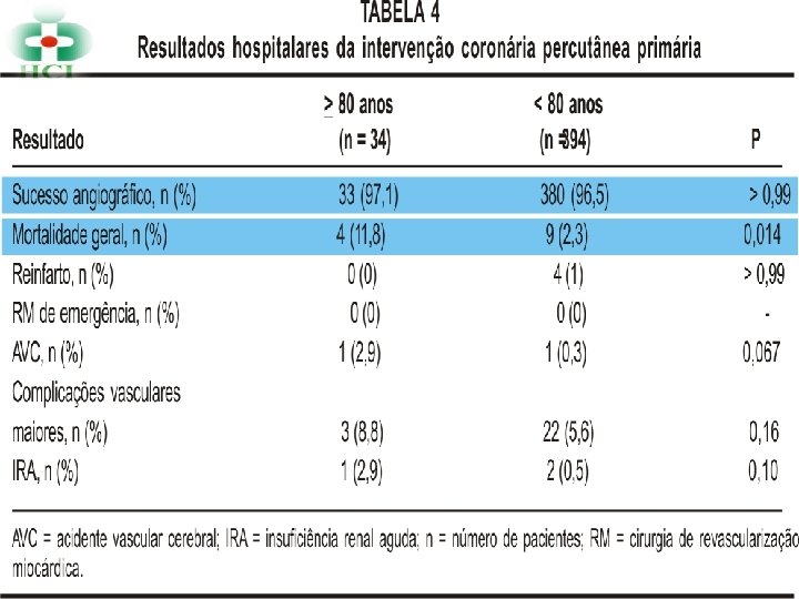 HEMOCOR SERVIÇOS MÉDICOS LTDA RESULTADOS HOSPITALARES DA INTERVENÇÃO CORONÁRIA PERCUT NEA PRIMÁRIA NO INFARTO AGUDO DO MIOCÁRDIO EM PACIENTES COM MAIS DE 80 ANOS. Dr. Leandro C. Mandaloufas