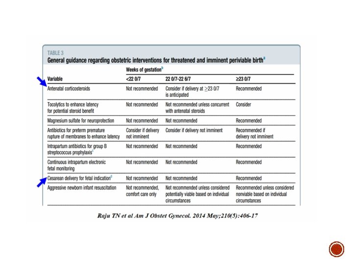 LIMITES DE PERIVIABILIDADE ( ao redor da viabilidade): além da idade gestacional (importância de outros fatores clínicos Paulo R. Margotto. Prof. da Faculdade de Medicina da Universidade Católica de Brasília (6 a Série) O papel do corticostéoide pré-natal no recém-nascidos Ao redor da viabilidade (Limites de de viabilidade) § Segundo Raju et al, a administração de corticosteróides pré-natal é uma das intervenções pré-natais mais eficazes para melhorar os resultados infantis. O tecido pulmonar de fetos entre 12 -24 semanas respondem aos corticosteróides com um aumento na maturação do epitélio e o aparecimento de corpos lamelares. § Mikko Hallman citou no International Workshop on Surfactante Replacement, Stockholm, Sweden, june 5 -6, 2015, onde tivemos a oportunidade de estar presentes, que de acordo com estudos randomizados provenientes do era pré-surfactante, a exposição dos fetos nascidos antes de 26 -28 semanas de gravidez para corticosteróide pré-natal não conseguiu melhorar os resultados. No entanto, recente grande coorte prospectiva de âmbito nacional da Suécia (EXPRESS: gestação 22 -26 semanas) mostrou que o corticosteróide pré-natal aumentou da sobrevivência dos prematuros nascidos antes de 27 semanas ou até mesmo antes de 24 de semanas, de gravidez. Com o uso do corticosteróide pré-natal, a sobrevida com 1 ano de idade aumentou 59% (odds ratio ajustada para vários fatores de confusão: 0, 41, IC a 95% de 0, 20 -0, 81). Também houve importante melhora no neurodesenvolvimento destes recém-nascidos pré-termos extremos. § A tabela a seguir oferece orientação baseada na evidência atual e opinião de especialistas. Devido a maioria dos recém-nascidos em 24 -25 semanas de gestação sobreviverem se reanimados, os esforços para prolongar a gravidez, durante o parto, intervenções para benefício fetal e reanimação neonatal deveriam geral ser oferecidas 11