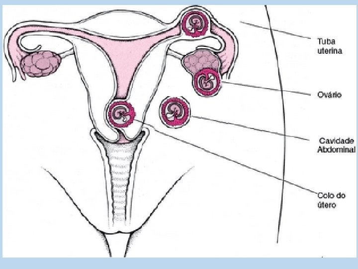 Gestação ectópica • Implantação e desenvolvimento do ovo fora da cavidade uterina • Ocorre 1 a cada 100 gestacões • Localização: abdominal, ovárica, no colo uterino, TUBÁRIA (90 a 95% dos casos) • Principal etiologia – disfunção tubária causada pela doença inflamatória pélvica (DIP)