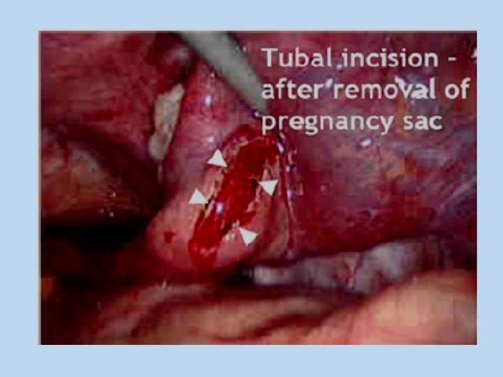 Tratamento • Expectante. . . • Laparoscopia com salpingostomia, sucção do material e hemostasia • Uso de drogas locais/sistêmicas como o metotrexate • Laparoscopia / Laparotomia com salpingectomia ou com salpingoplastia