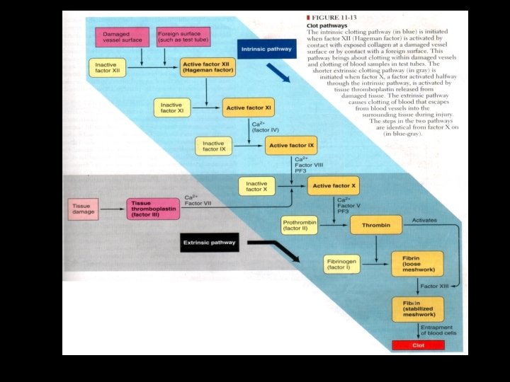 The coagulation phase and formation of the fibrin clot: • Coagulation is a process by which prothrombin is converted into the proteolytic enzyme thrombin. • Which in turn cleaves the fibrinogen molecule to form insoluble fibrin in order to stabilize and add to the platelet plug. • Traditional concept of the clotting system evolved from the test tube analysis and follows two pathways.