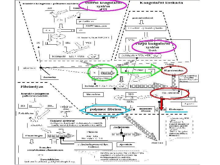 LÉKY heparin, orální antikoagulace, antiagregancia IMUNOPATOLOGICKÉ STAVY anafylaktické reakce hemolytické potranfúzní reakce vaskulitídy PATOLÓGIE PKS vrozené -APC rezistence, deficit proteinu C, S, antitrombinu AT hemofilie a jiné hereditární defekty v pks a destičkách získané- antiphosphoolipid protein syndrom autoimunní onemocnění (lupus erythematodes) trombopatie (trombocytopenie) získané porucha proteosyntézy - jaterní selhávání diluce plasmy a destiček po krvácení a objemové náhradě