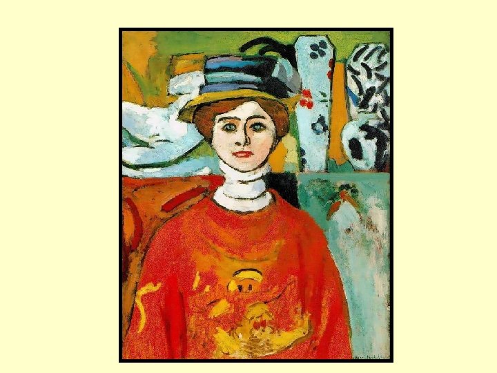 Fauvism- from the French word meaning “wild beasts” § The Fauvist period refers to combinations of bright colors and energetic brushwork. § This period was a brief one for Matisse but he produced a significant number of remarkable canvases. § He became known as the leader in ‘Fauves’ and in 1905 he exhibited together with other Fauve painters. § The bold forms and bright colors of the paintings shocked Paris.