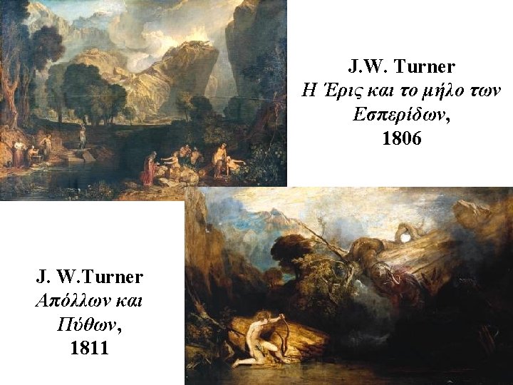 Αγγλική Τέχνη: Επιδράσεις του κλασικισμού • Henry Fuseli (1741 -1825) • Joseph Turner (1775 -1851) • William Etty (1787 -1849) • Frederick Leighton (1830 -1896) • Lawrence Alma-Tadema (1834 -1912) • William Waterhouse (1849 -1917)