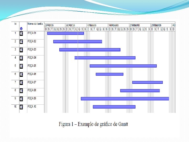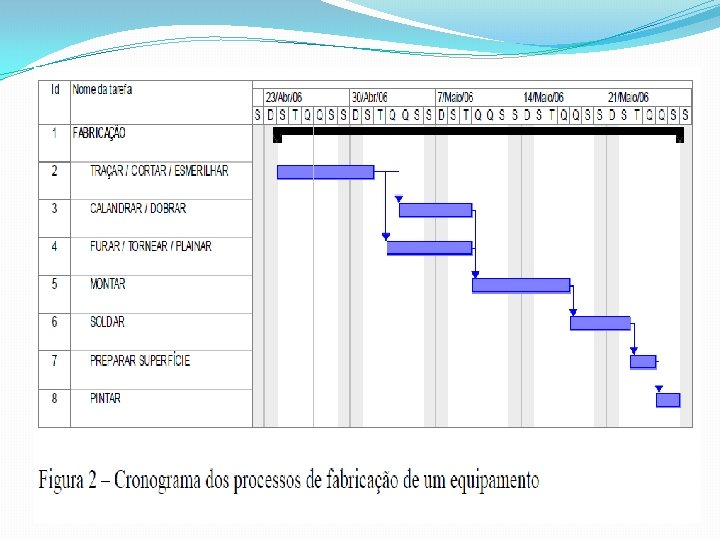 Gráfico de Gantt �Entre todas as ferramentas que podem ser utilizadas no processo de planejamento e controle da produção (PCP), o gráfico de GANTT em geral é um dos mais utilizados pela maioria das indústrias metalúrgicas, principalmente para elaboração de cronogramas de planejamento e acompanhamento dos processo de fabricação.