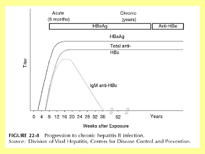 Hepatitis B Diagnosis • Hepatitis B is detected by looking for a number of different antigens and antibodies: – Ig. M antibody to Hepatitis B core antigen (Ig. M anti-HBc): • Positivity indicates recent infection with HBV (≤ 6 months). • Its presence indicates acute infection. – Hepatitis B e antigen (HBe. Ag): • A secreted product of the nucleocapsid gene of HBV that is found in serum during acute and chronic Hepatitis B. • Its presence indicates that the virus is replicating and the infected person has high levels of HBV.