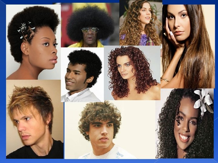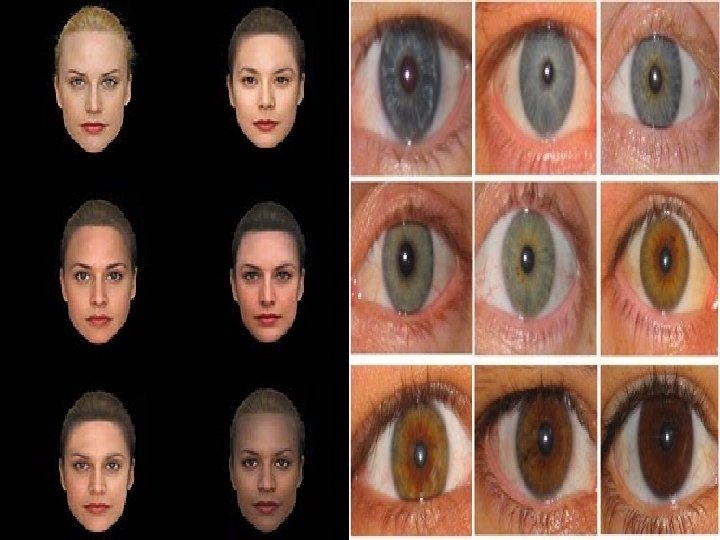 POLIGÊNICAS ou QUANTITATIVAS O número de genes dominantes contribui para a determinação da pigmentação da pele. Acredita-se que 5 pares de alelos interagem para determinar a cor da pele em seres humanos, que são agrupados em várias classes fenotípicas. � AABB: Negro � Aa. BB, AABb: Mulato Escuro � Aa. Bb, AAbb, aa. BB: Mulato Médio � Aabb, aa. Bb: Mulato Claro � aabb: Branco �