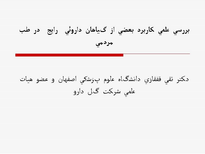 the interface of nutrition and therapeutics u Valeriana officinalis Ø As functional food : « promote sleeping » Ø As phytomedicine : neurosedative